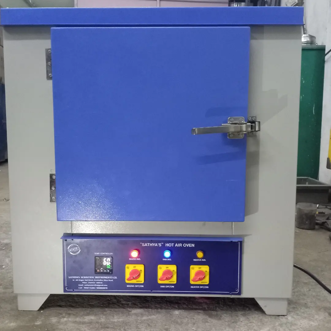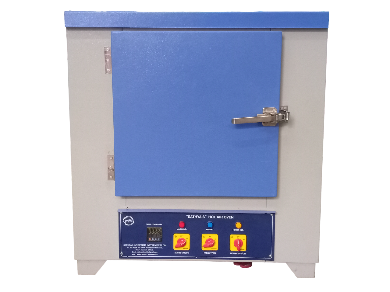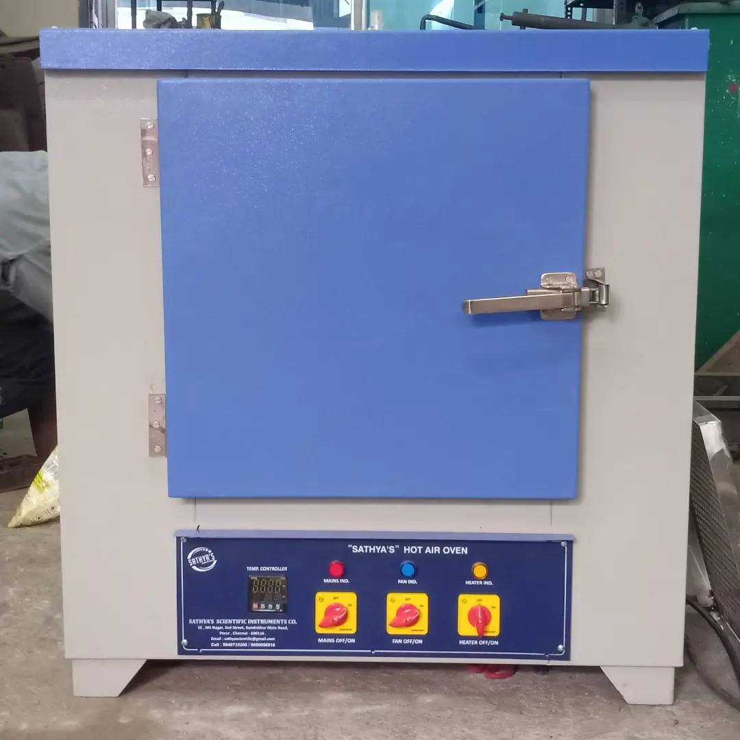 Air circulation is ensured through a motorized blower, promoting uniform temperature distribution.